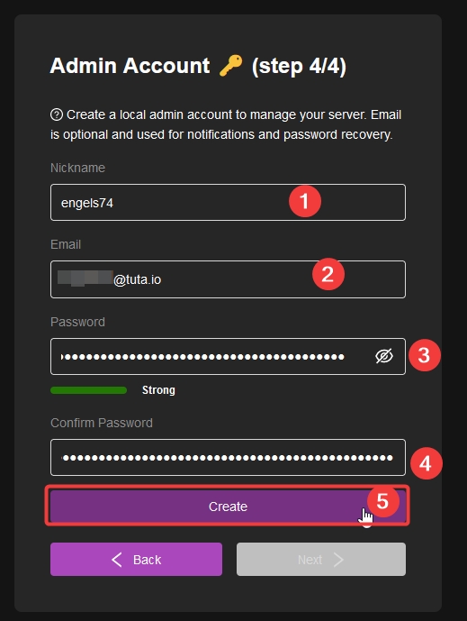 Choose a nickname and a strong password.