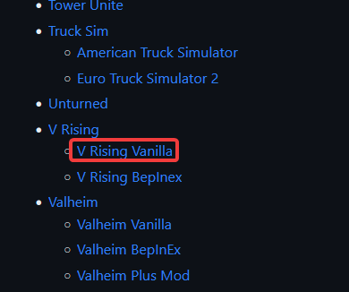 Go to the Egg repository, locate and then select V Rising Vanilla.
