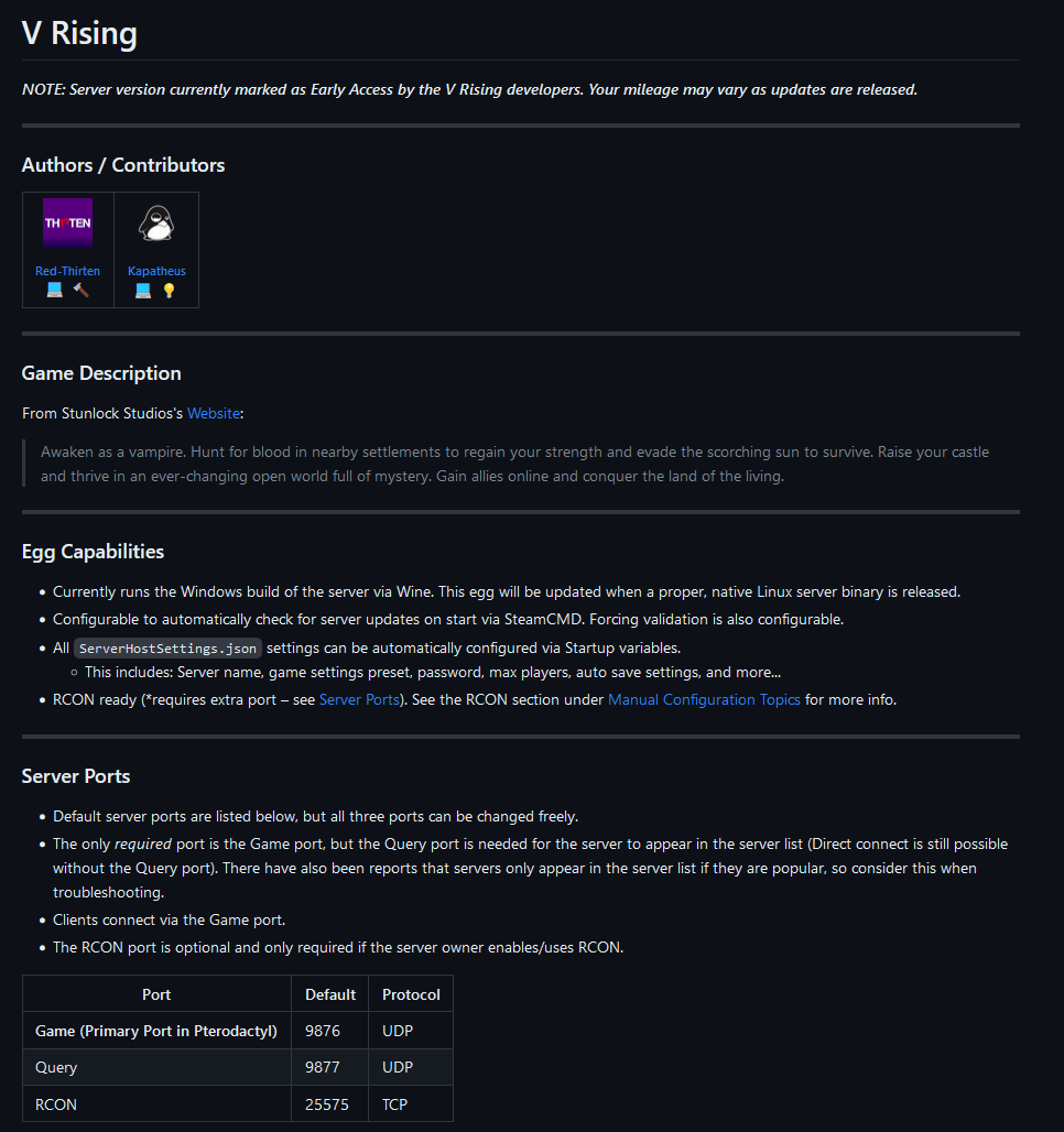 The important thing here is to count how many ports the game server requires and remember that number for when we build the server. Because the "V Rising" server requires three ports (game, query, and RCON), we require three ports in total.